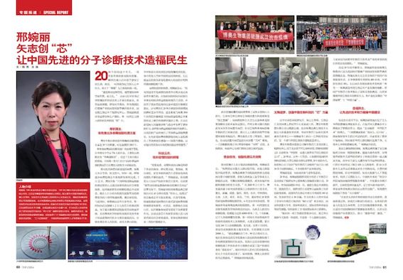 近日,中國(guó)期刊中唯一以人物報(bào)道為重點(diǎn)的大型綜合性新聞半月刊《中華英才》專訪了清華大學(xué)醫(yī)學(xué)院研究員、博士生導(dǎo)師,生物芯片北京國(guó)家工程研究中心常務(wù)副主任,博奧生物集團(tuán)有限公司高級(jí)副總裁,北京博奧晶典生物技術(shù)有限公司總裁邢婉麗,深入報(bào)道了博奧在抗疫期間全力投入科研攻關(guān)的戰(zhàn)“疫”歷程。