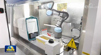 全集成新冠檢測(cè)移動(dòng)實(shí)驗(yàn)室接通220V民用電即可正常工作,同時(shí)它自身配備發(fā)電系統(tǒng)。采樣可以通過機(jī)械手和人工兩種方式完成,病毒滅活、核酸分析都無需人工干預(yù)自動(dòng)完成。操作人員只需要做一個(gè)動(dòng)作,就是用移液槍將滅活后試管內(nèi)的樣本加入到芯片里封閉,放入全自動(dòng)微流控核酸分析儀中進(jìn)行檢測(cè),45分鐘后車內(nèi)的電腦顯示屏上就會(huì)自動(dòng)顯示結(jié)果。
