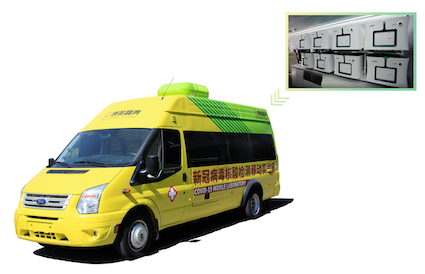 ? ? ? 裝載全集成芯片實驗室的“輕騎兵”新冠病毒核酸檢測移動實驗室是全國首款由輕型客車裝載的移動實驗室,由清華大學(xué)、生物芯片北京國家工程研究中心和北京博奧晶典生物技術(shù)有限公司共同研發(fā)??焖佟蚀_、靈活的即時檢測,為社區(qū)、山區(qū)、鄉(xiāng)村等基層群眾就地核酸檢測全覆蓋成為可能,用科技助力打通疫情防控最后一公里。