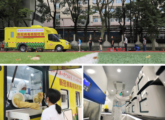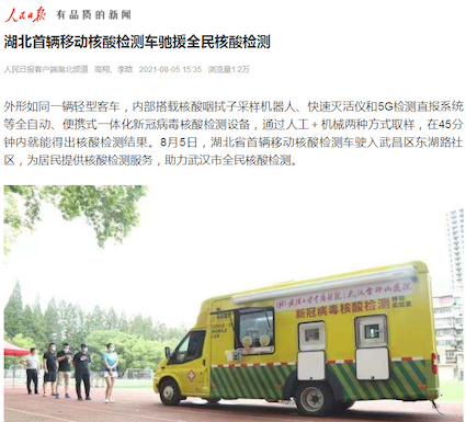 在武漢全員核酸檢測過程中,有這樣一抹亮色,馳騁在武漢抗疫前線,它就是博奧晶典新冠病毒核酸檢測移動實(shí)驗(yàn)室。由清華大學(xué)、生物芯片北京國家工程研究中心和北京博奧晶典生物技術(shù)有限公司共同研發(fā)的新冠病毒核酸檢測移動實(shí)驗(yàn)室是國內(nèi)首臺集采集和檢測為一體的移動式新冠病毒檢測實(shí)驗(yàn)室,同時也是全國首款由輕型客車裝載的移動實(shí)驗(yàn)室,被鐘南山院士命名為“輕騎兵”。