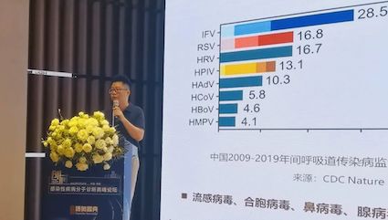 博奧晶典技術(shù)總監(jiān)潘良斌博士作了題為《呼吸道感染多重分子檢測技術(shù)》的主題報告。潘良斌博士介紹了后疫情時代中國呼吸道疾病感染現(xiàn)狀和特征,并指出新冠將與流感等病毒長期共存的發(fā)展趨勢?;谥袊粑栏腥粳F(xiàn)狀,博奧晶典開發(fā)出了針對呼吸道疾病感染解決方案,包含六項呼吸道病毒檢測、下呼吸道八項碟式芯片檢測和全集成微流控芯片檢測技術(shù)等。其中,潘良斌博士著重介紹了博奧晶典新研發(fā)的六項呼吸道病毒檢測試劑盒及其卓越的性能指標:1)采用多色探針熔解曲線技術(shù),一管實現(xiàn)七重靶標檢測;2)凍干微球工藝,無需試劑配置,加入核酸即可上機檢測;3)靈敏度行業(yè)領(lǐng)先,六項指標靈敏度均達300-500 copies/mL。