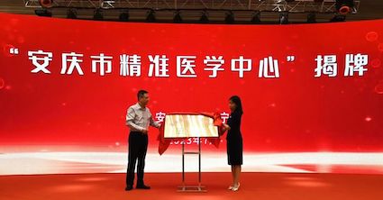 邢婉麗教授與王趙春副市長(zhǎng)為安慶市精準(zhǔn)醫(yī)學(xué)中心揭牌