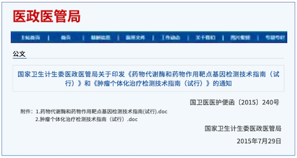 2015年7月31日,國(guó)家衛(wèi)生計(jì)生委醫(yī)政醫(yī)管局印發(fā)的《藥物代謝酶和藥物作用靶點(diǎn)基因檢測(cè)技術(shù)指南(試行)》中,明確給出“常見(jiàn)藥物代謝酶和藥物作用靶點(diǎn)基因遺傳變異檢測(cè)結(jié)果對(duì)臨床用藥的指導(dǎo)建議“:根據(jù) CYP2C19、CYP2C9、VKORC1、CYP4F2等基因的多態(tài)性檢測(cè)結(jié)果,可相應(yīng)調(diào)整藥物(華法林、氯吡格雷)的給藥方案。