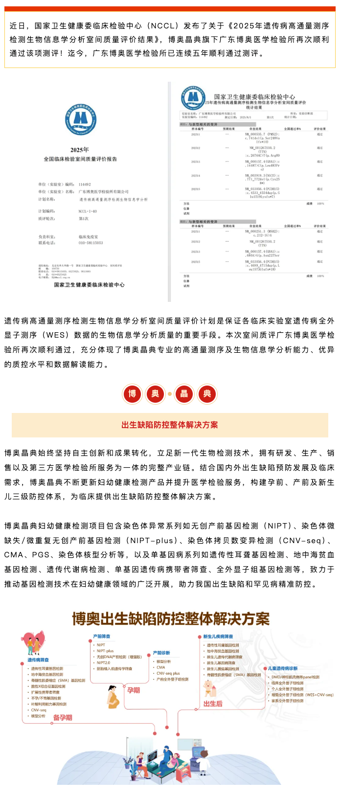 質(zhì)量捷報 | 博奧晶典旗下檢驗所滿分通過2025年NCCL遺傳病高通量測序檢測生物信息學(xué)分析室間質(zhì)評