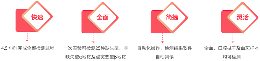 地中海貧血基因檢測試劑盒(微陣列芯片法)采用多重等位基因特異性 PCR 與通用芯片的技術對中國人最常見的地中海貧血基因突變位點及缺失片段進行檢測??梢淮涡酝瑫r完成 α- 和 β- 地中海貧血基因共 25 種突變的檢測,檢測結(jié)果可以輔助臨床診斷,也可用于流行病學調(diào)查、婚 檢及新生兒檢測等領域。